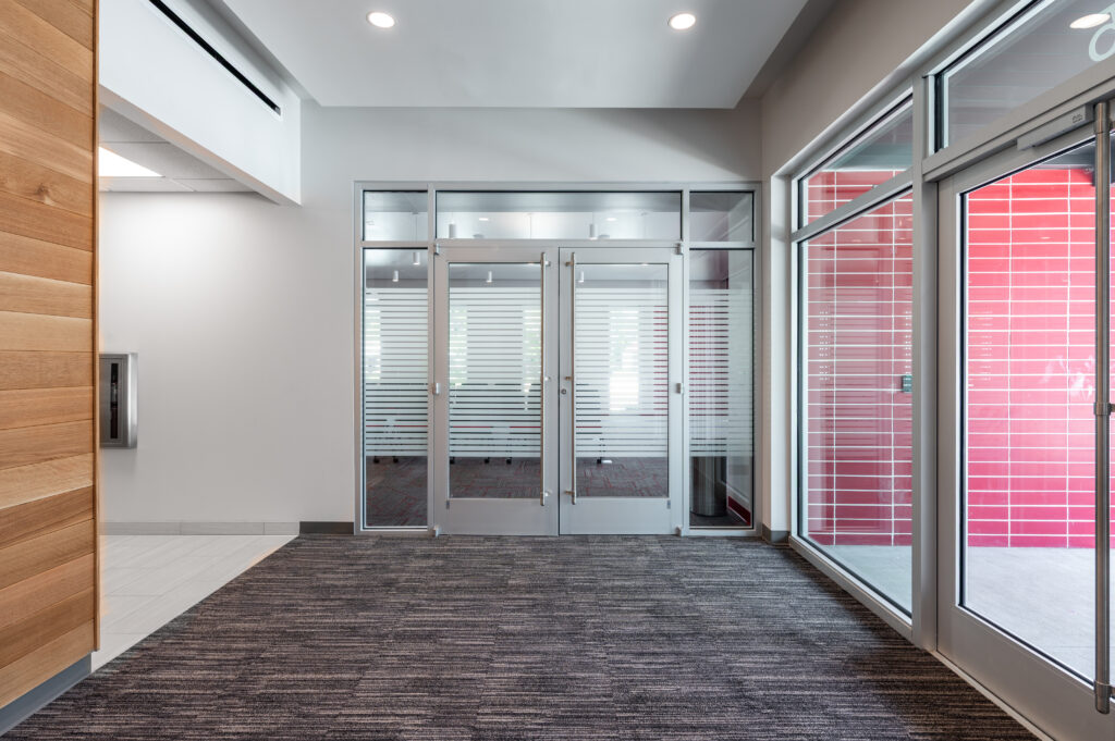 Building materials for fire stations are chosen for durability, cost effectiveness, and maintenance-friendly lifespan. In this case the station is built using split-faced CMU, glazed CMU, prefinished metal siding, standing seam metal roofing, and synthetic wood planking. The doors on the apparatus bays are four-fold doors, which allow for fast response times for the firefighters when exiting the station.