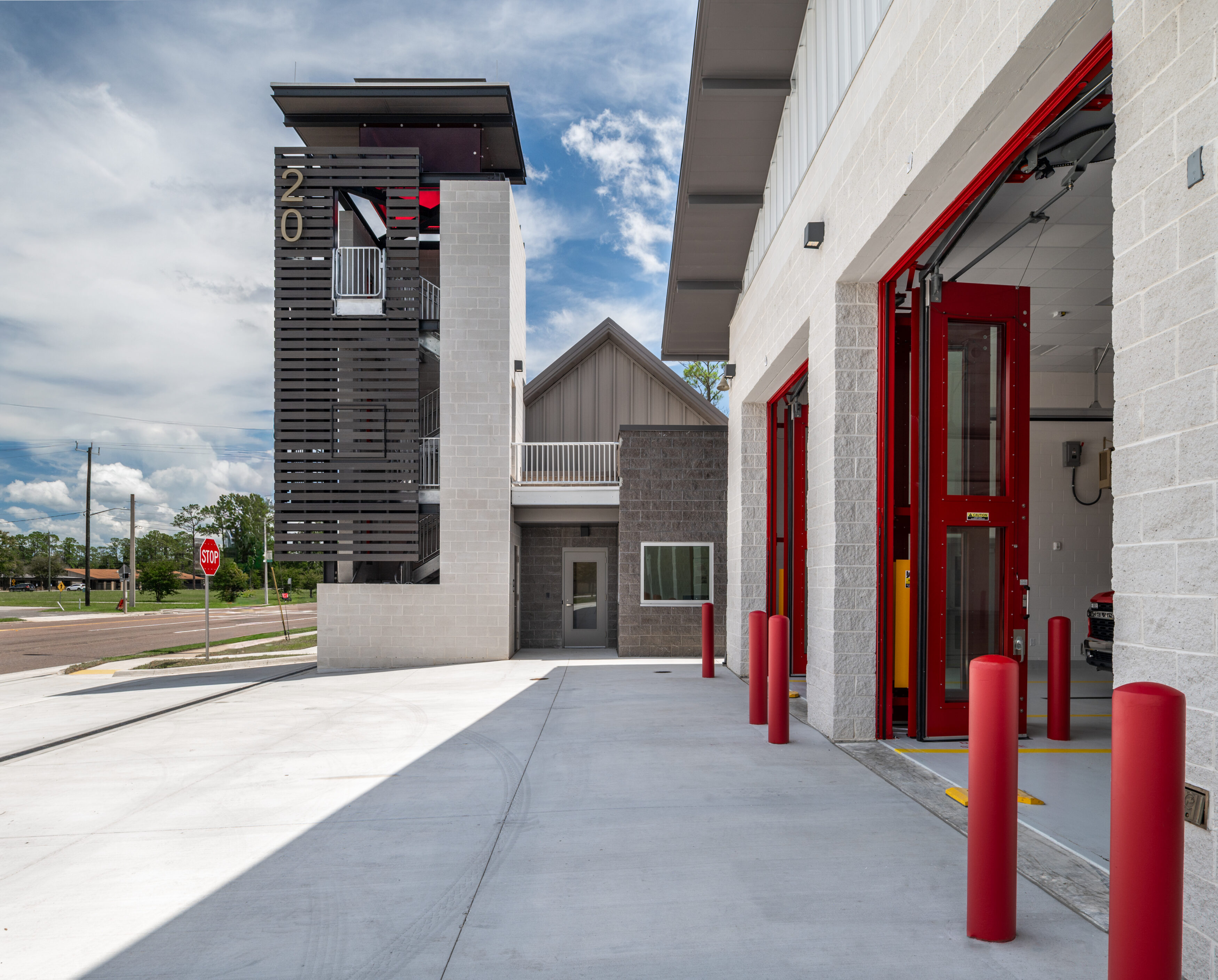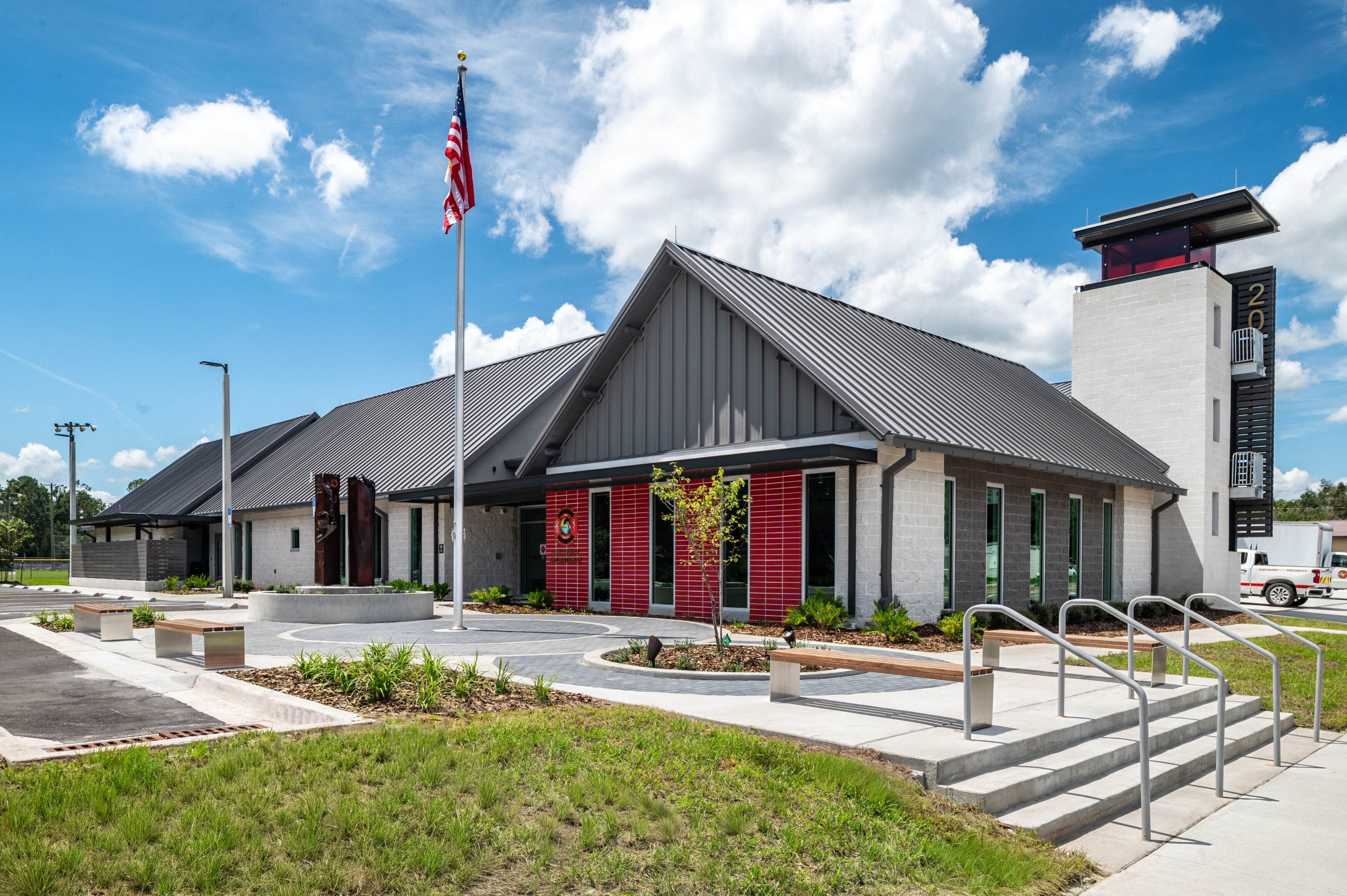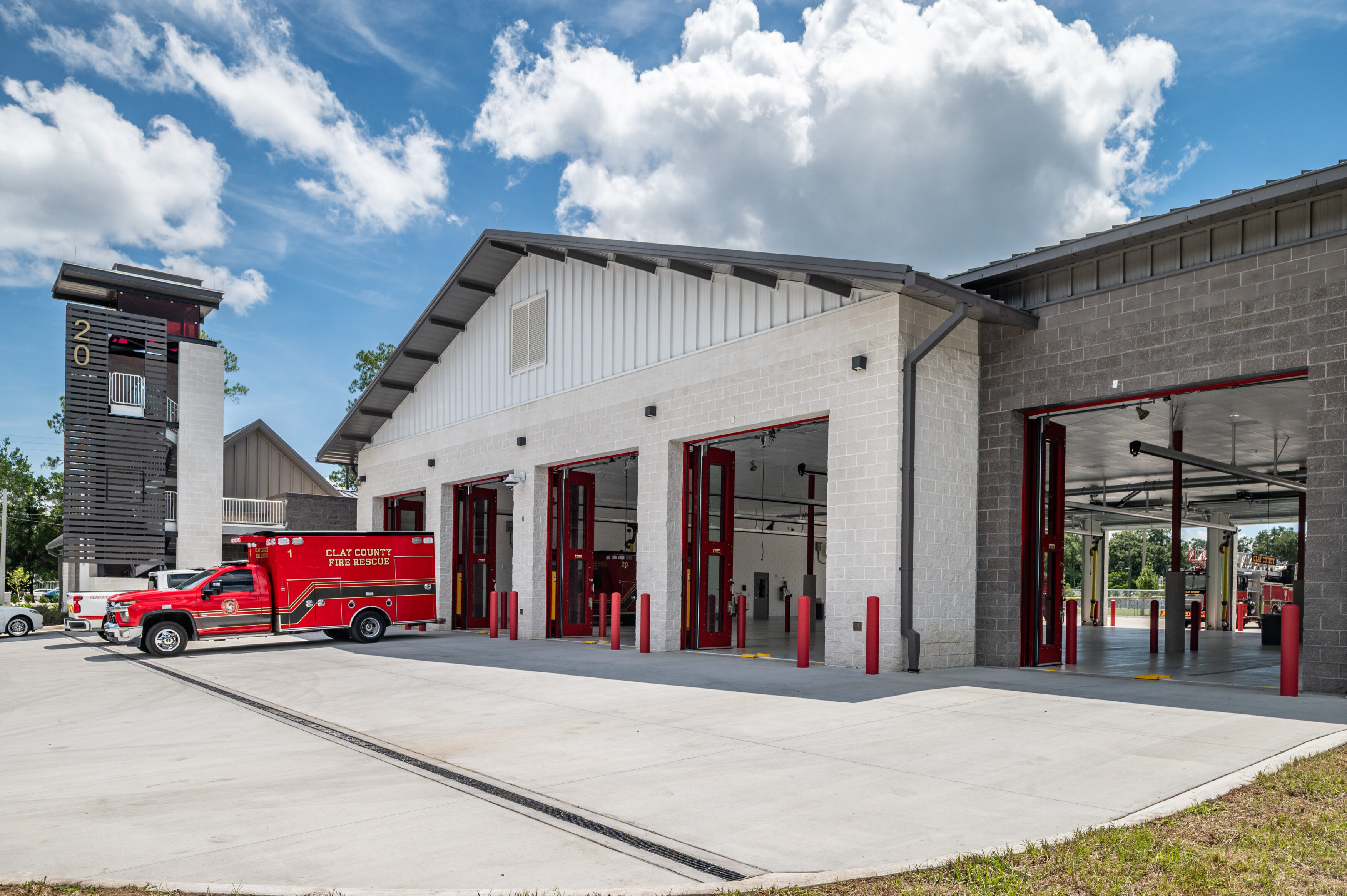 As part of this effort, DHA has designed two new fire stations, with four additional stations currently in development. The first of these, Fire Station 20, was completed in June 2025 by Ajax Building Company and is located along SR 16 in Green Cove Springs. The 19,000-square-foot facility accommodates five apparatus bays and provides living quarters for 15 firefighters per shift.