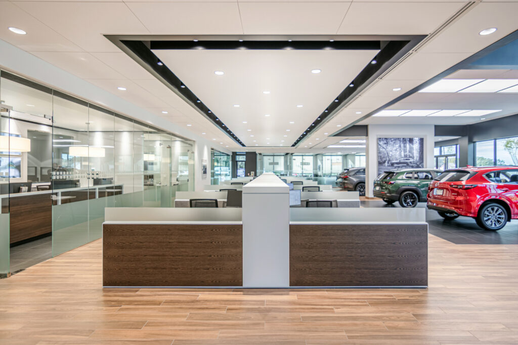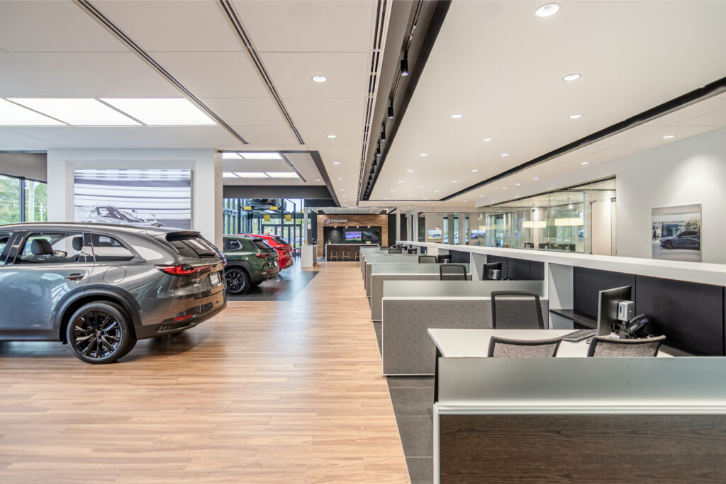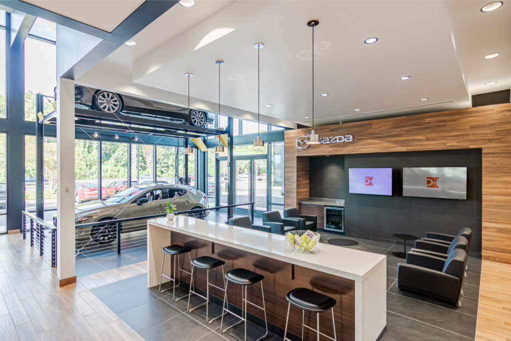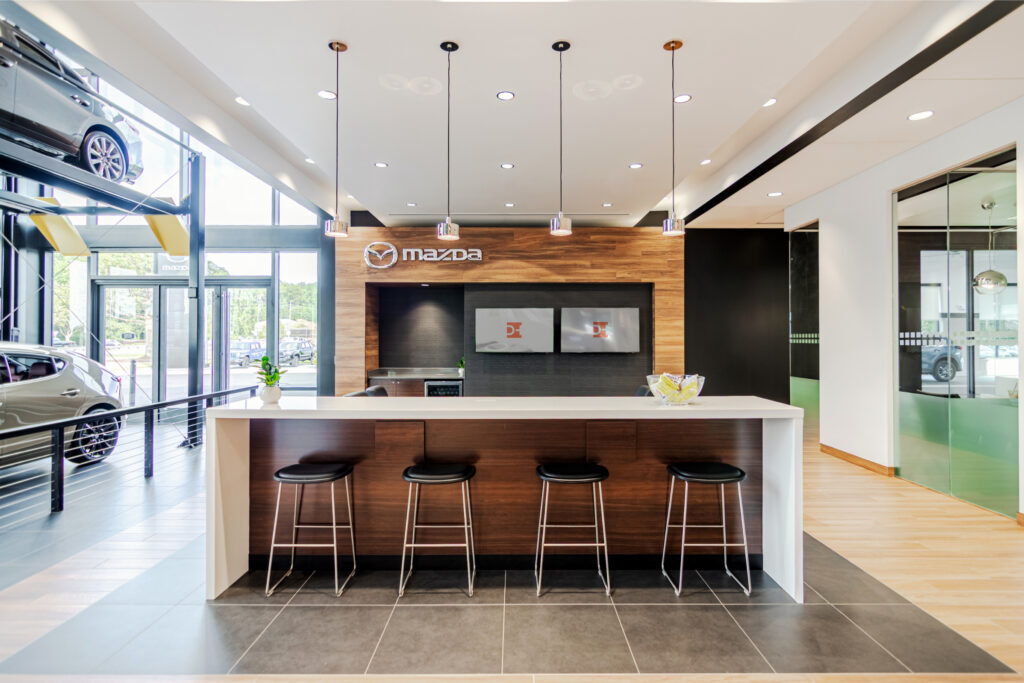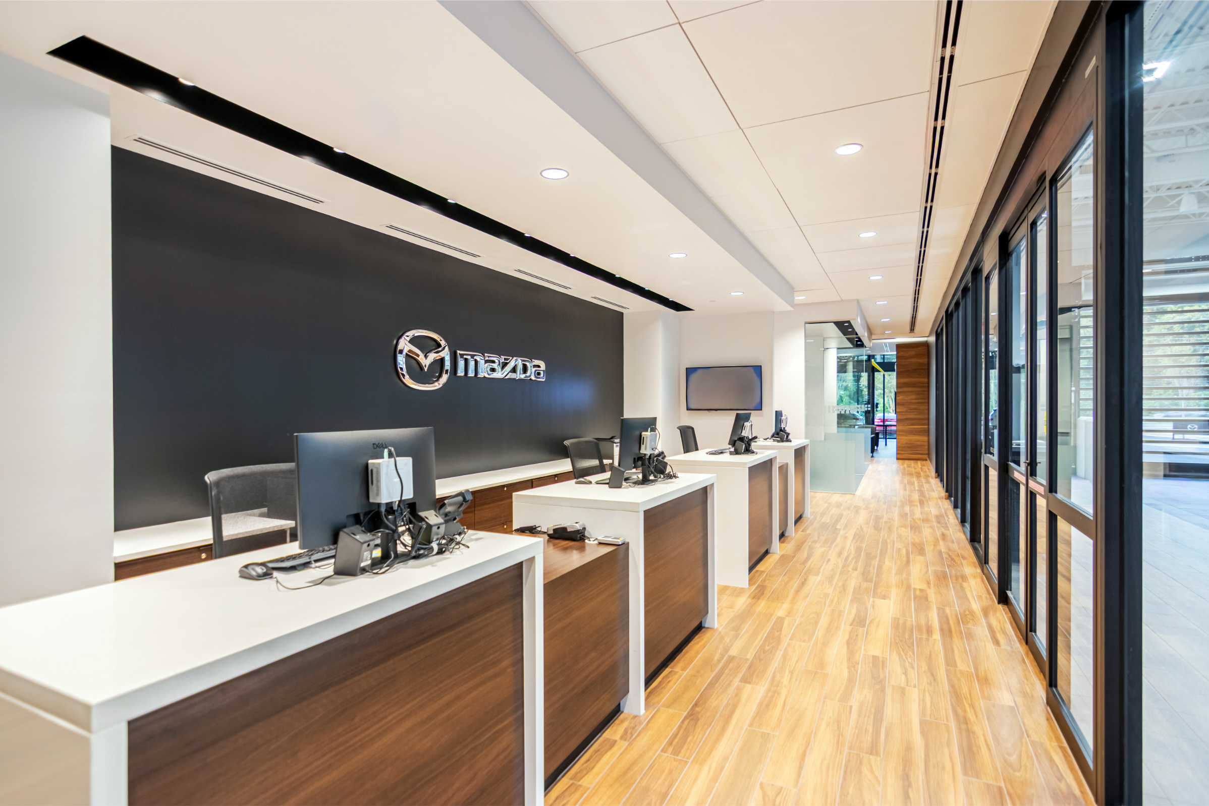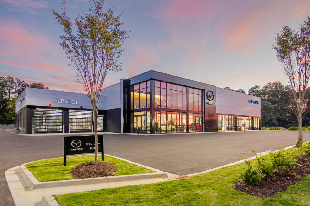 Mazda Kennesaw is a new construction dealership in a suburban location in northwest Atlanta. The project includes the showroom and associated sales & finance offices, customer lounge, parts, service shop, and car wash.