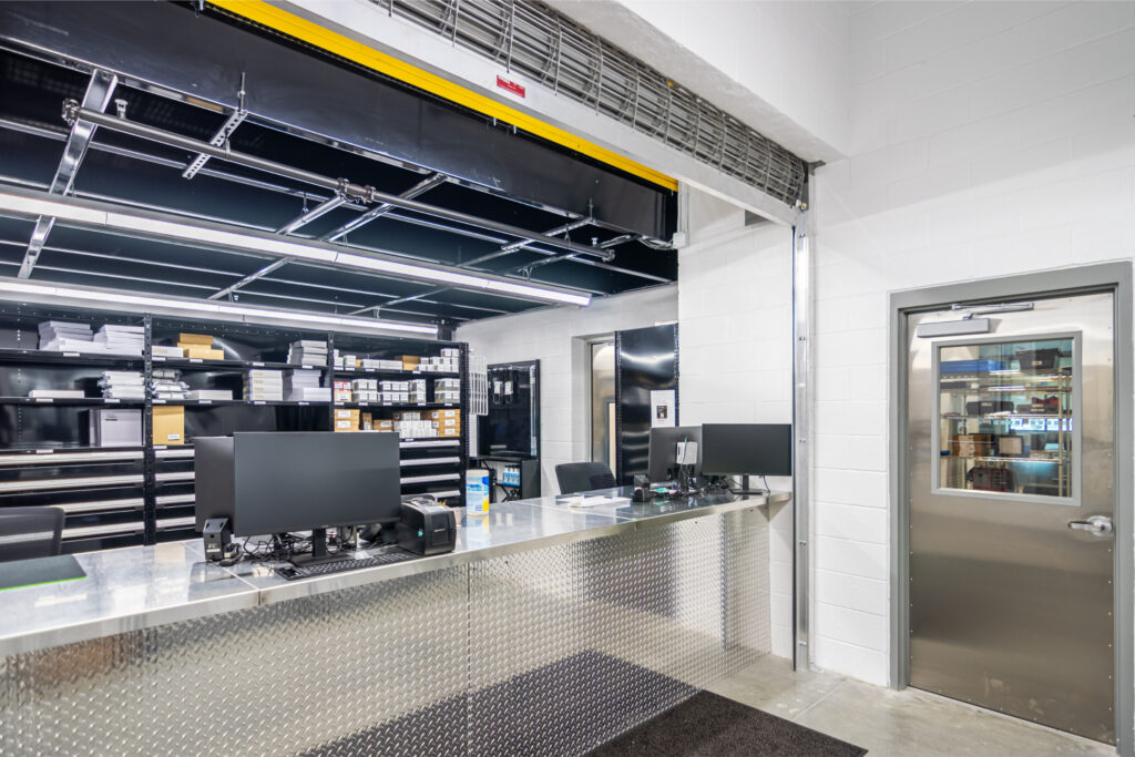Exterior materials are a combination of split faced CMU, aluminum composite panels and glass curtainwall. The interior is designed around a dramatic showroom space finished with a combination of wood and tile finishes in warm tan and gray tones.
