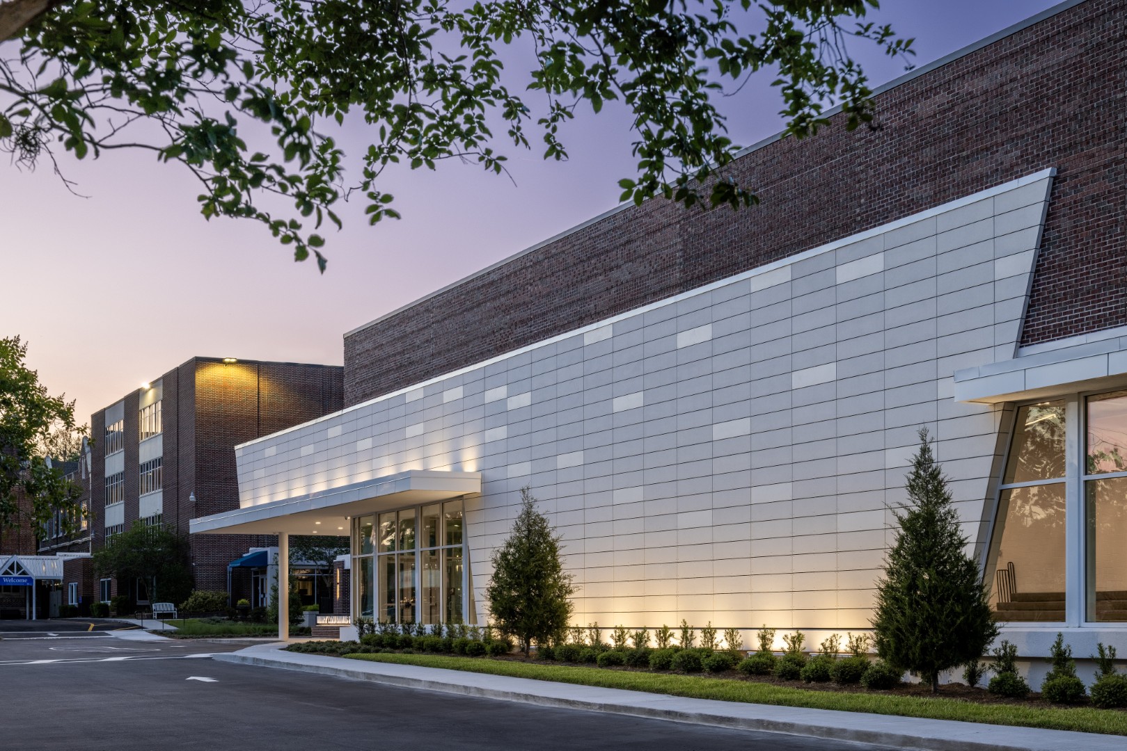 Dasher Hurst Architects was commissioned with the design of their first new building in decades, a new Family Life Center including a new building, track & field, and gateway for the RPDS campus. This new 13,000 sf building houses a basketball court, warming kitchen, and multi-purpose rooms that can be enjoyed by both the school and the community. The gateway will create a new front door to welcome students to the campus with a brick and stone structure facing Post Street.  The design approach ties the new construction to the existing campus through the use of brick and stone, taking our cues from the predominant materials on the existing sanctuary and campus.