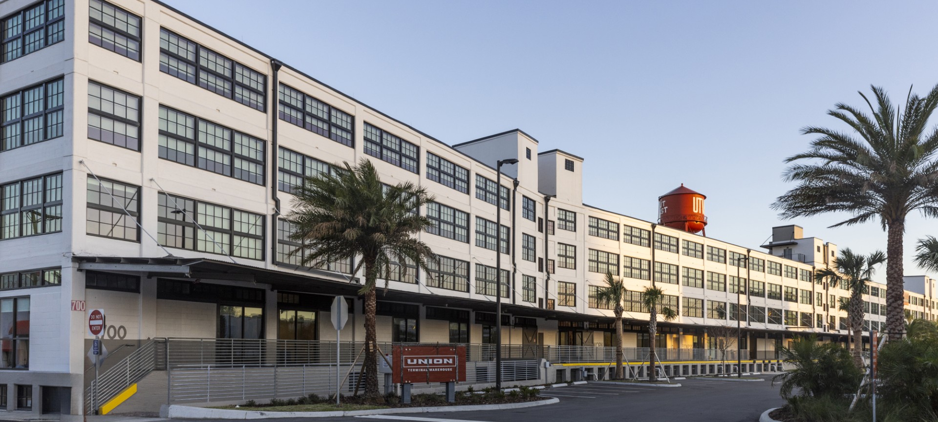 The Union Terminal Warehouse is a reinforced concrete structure, constructed as a produce warehouse in 1913. Goods were delivered to the building via the adjacent Hogan’s Creek and a CSX rail spur. Our client, Columbia Ventures, had a vision to convert the building into a vibrant mixed use structure that fosters a live/work/create environment that resonates with a creative class of makers within an independent thinking residential Jacksonville audience.